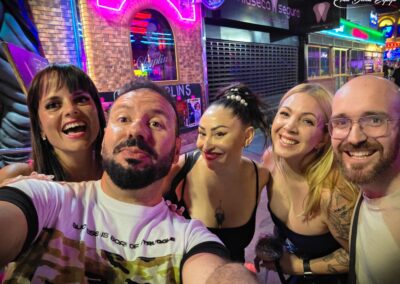 Por la noche, Benidorm saca su mejor cara. Las luces, la música y el ambiente me recordaron muchísimo a Las Vegas. Y lo mejor fue que coincidimos con unos amigos, Pamela y Jesús, a los que hacía tiempo que no veíamos. Entre risas, copas y buen rollo, la noche fue uno de los mejores momentos del viaje.